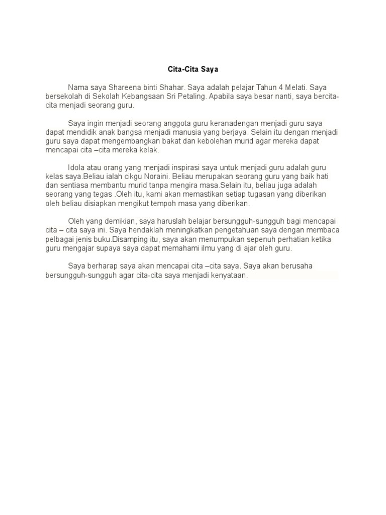 Cita Cita Saya Adalah Menjadi Seorang Guru Malaybasa