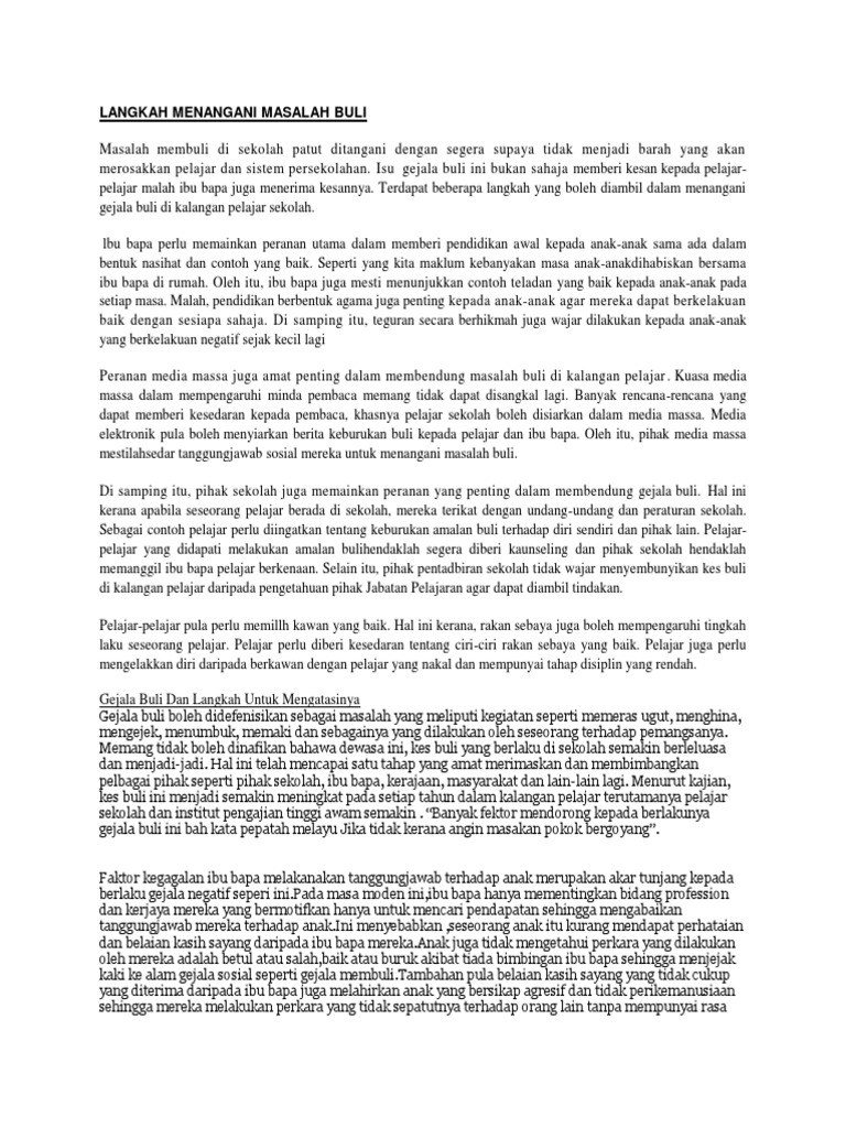 Karangan Langkah Mengatasi Gejala Buli Di Sekolah