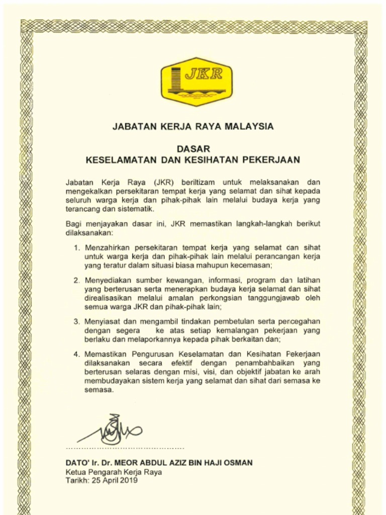 Dasar Keselamatan Dan Kesihatan Pekerjaan Pdf