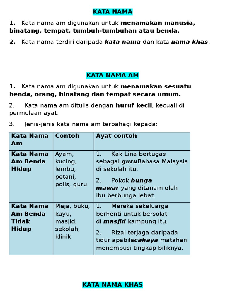 Contoh Kata Nama Khas Materi Pelajaran 1