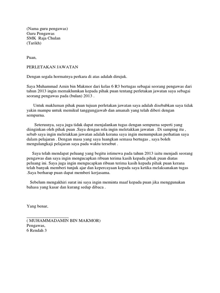 Download Letak Jawatan Contoh Surat Perletakan Jawatan Persatuan