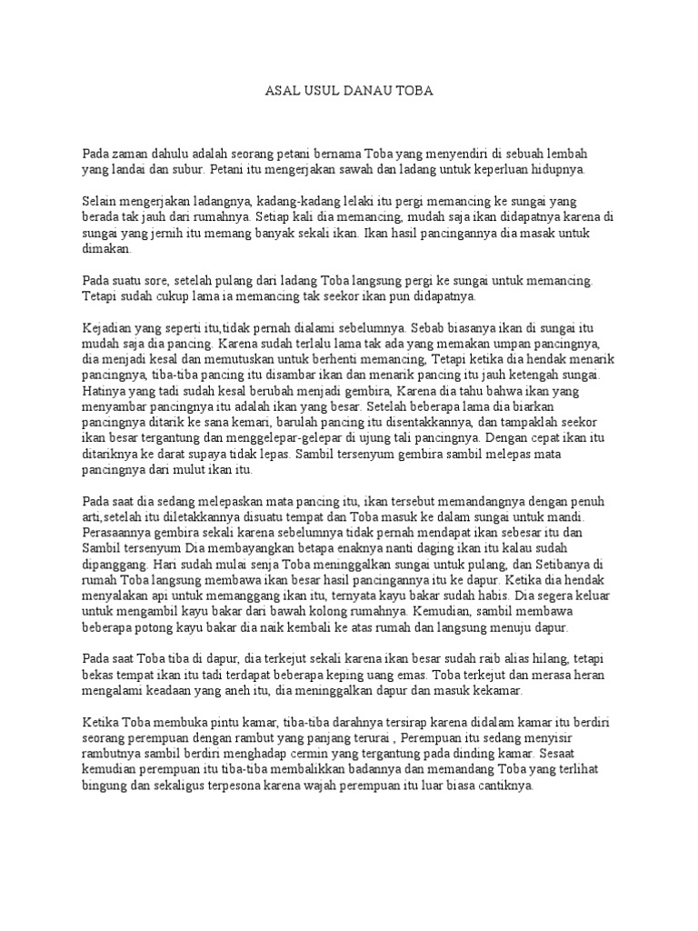 Cerita Asal Usul Danau Toba Bahasa Inggris Dan Terjemahannya Danau Indah