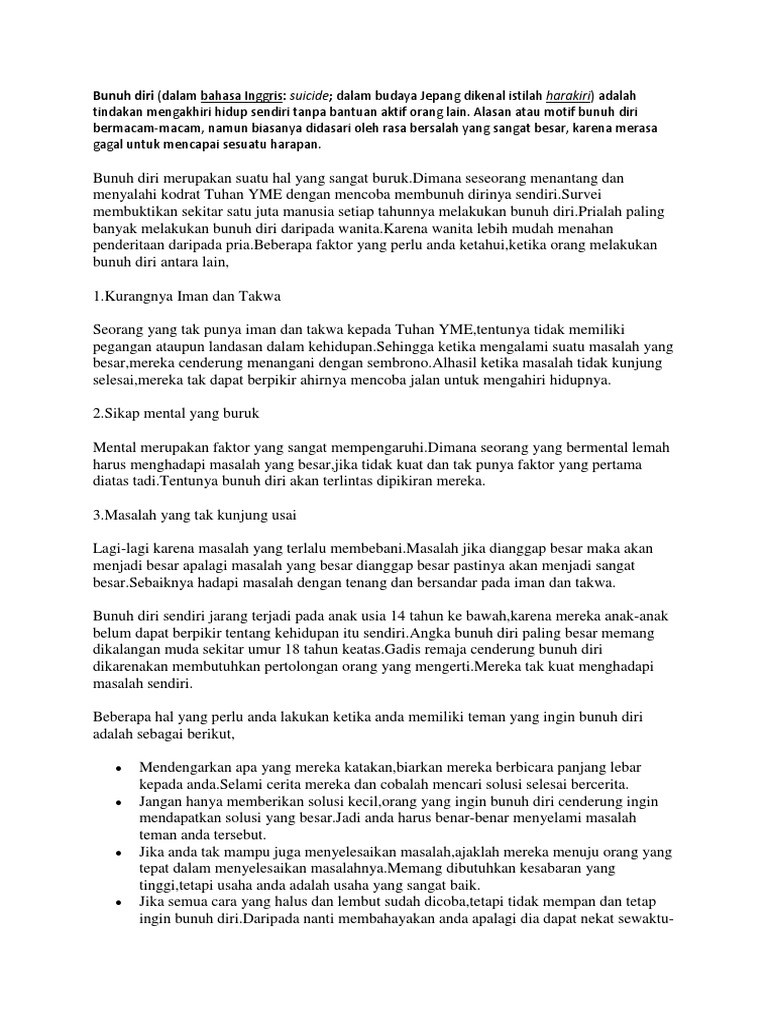 Orang Bunuh Diri In English Translation Examples Of Use Orang Bunuh Diri In A Sentence In Indonesian