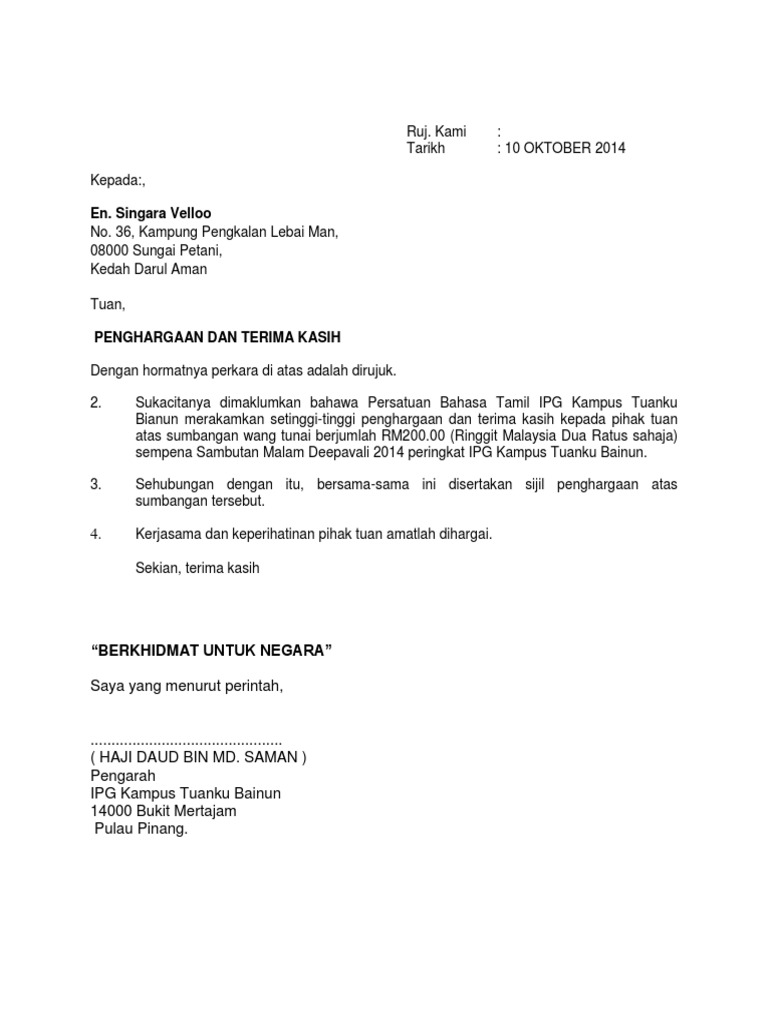 Surat Rasmi Ucapan Terima Kasih Atas Sumbangan Jenniferbphoto