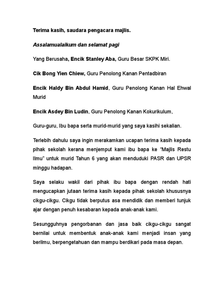 Contoh Ucapan Terima Kasih Kepada Guru Daripada Ibu Bapa
