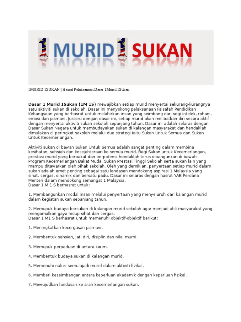 Doc Faedah Faedah Pelaksanaan Dasar 1murid 1sukan Mak Wen Hui Academia Edu