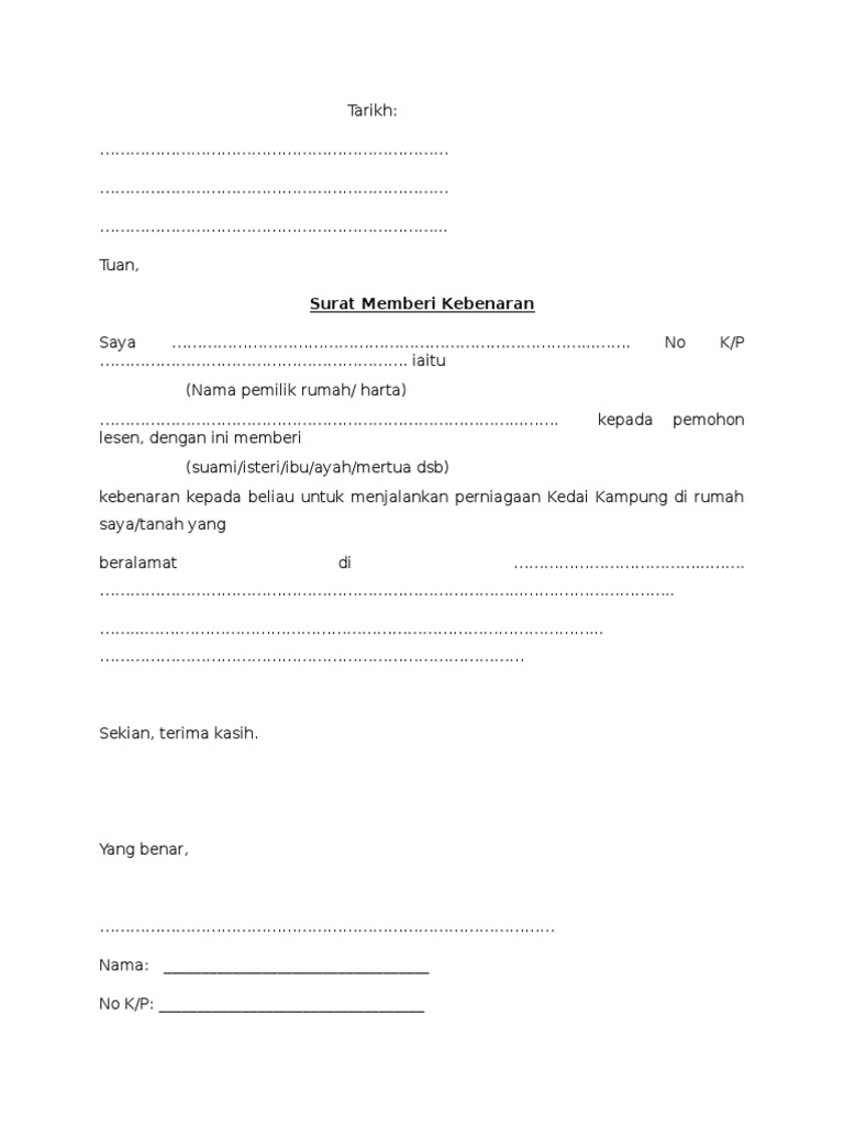 Contoh surat penyewa meminta kebenaran tuan rumah kepada sublet merancang untuk mempunyai seseorang menyewakan pangsapuri atau rumah sewa anda untuk musim panas atau tempoh masa yang singkat. Surat akuan kebenaran tuan tanah. Pdf Contoh Surat Kebenaran Dari Pemilik Mr Z Academia Edu.