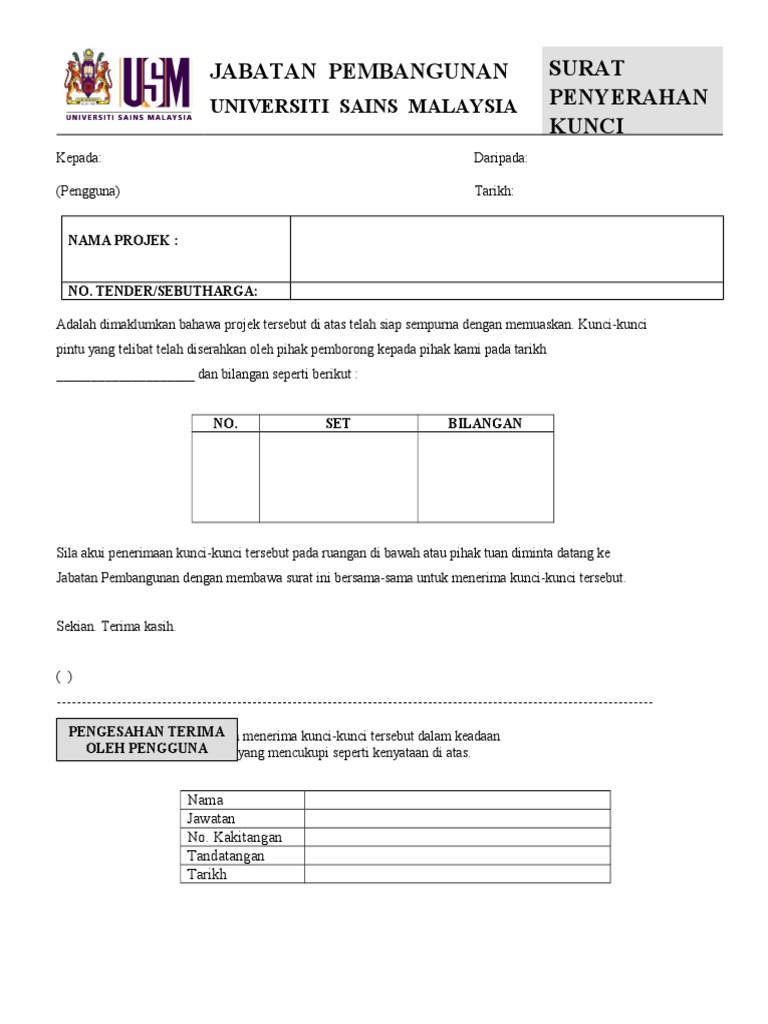 Contoh Surat Rasmi Penyerahan Kunci In English Nanikalux