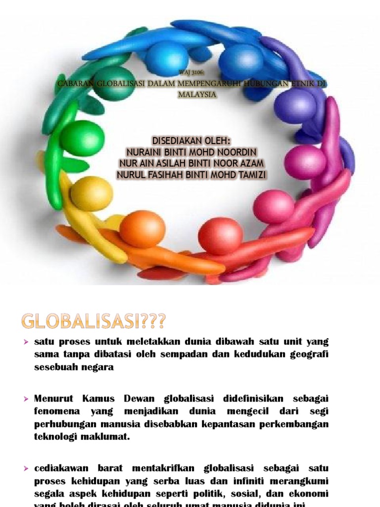 Cabaran globalisasi terhadap hubungan etnik di malaysia. Meningkatkan kefahaman pelajar terhadap cabaran pluraliti budaya dan hubungan etnik di Malaysia. Untuk melihat kesan globalisasi terhadap hubungan etnik di Malaysia kita harus memerhatikan terlebih dahulu konsep-konsep yang berkaitan dengan hubungan etnik itu sendiri seperti konsep perpaduan asimilasi amalgamasi pluralisme dan perpaduan nasional. Malaysia Dan Cabaran Cabaran Globalisasi Pptx.