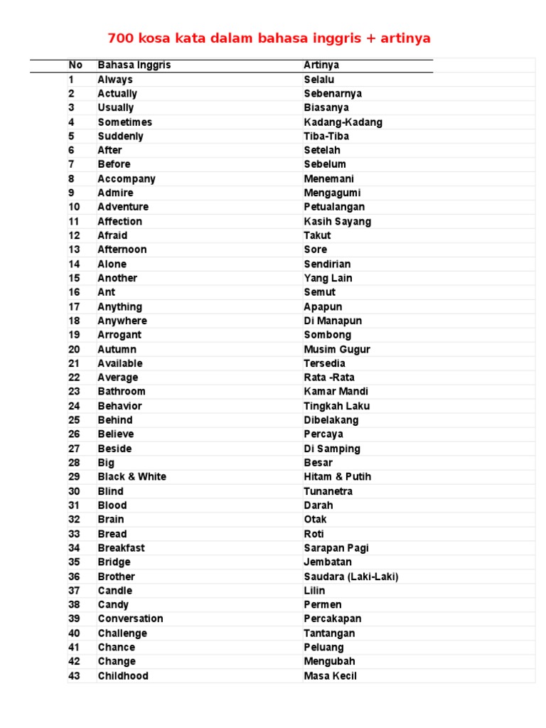 700 Kosa Kata Dalam Bahasa Inggris Ari English