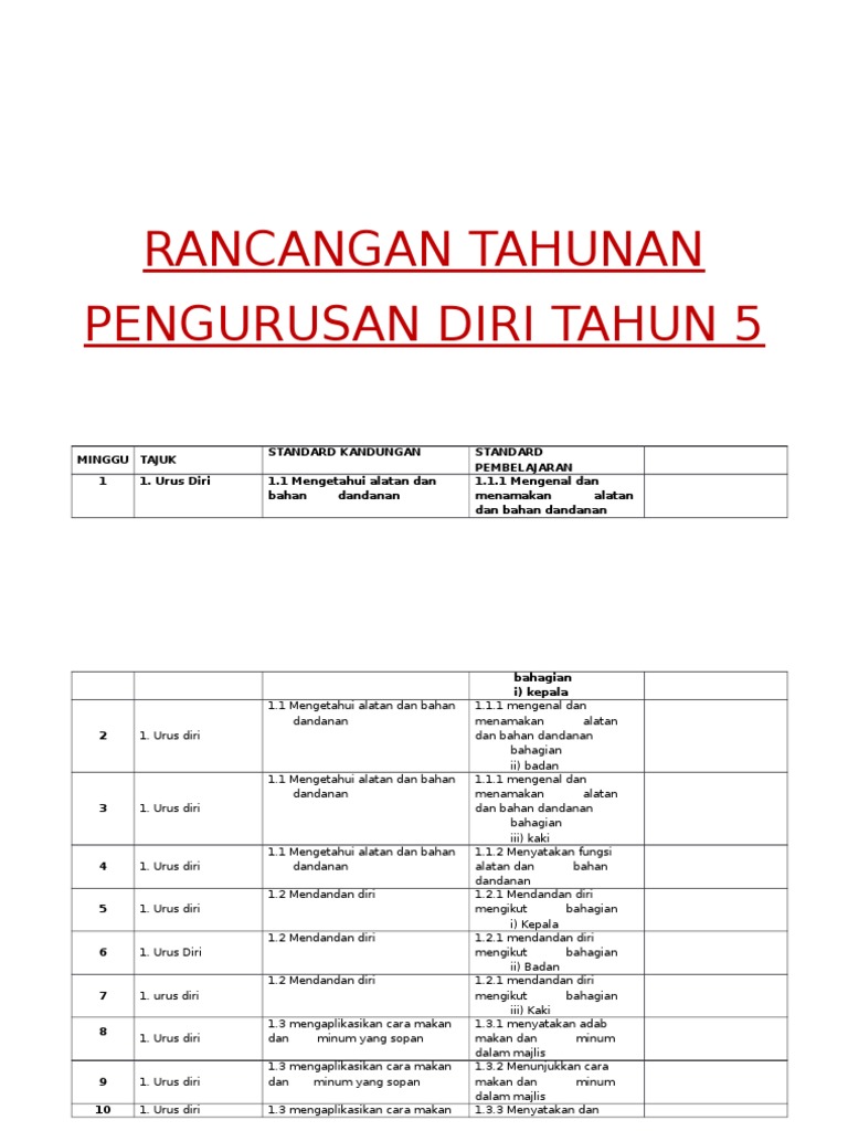 Dskp Pengurusan Diri Tahun 5 Pendidikan Khas