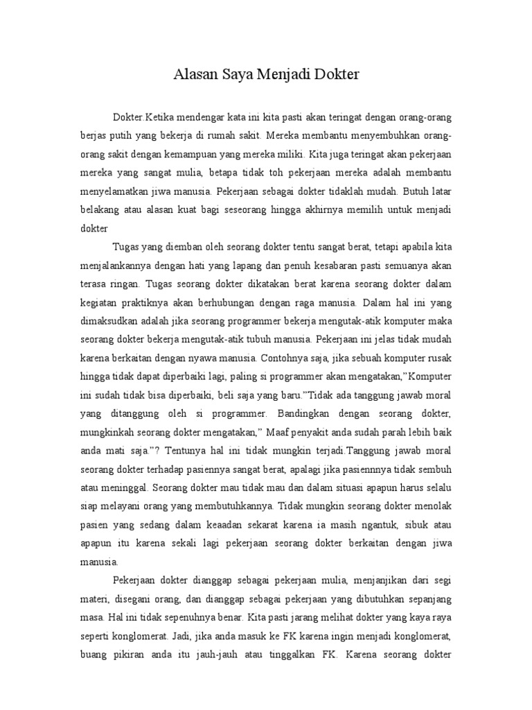 Karena ga tau mau jadi apa selain jadi dokter. Berikut ini akan dijabarkan 10 alasan kenapa seseorang ingin menjadi dokter. KARANGAN CITA CITA MENJADI DOKTER DALAM BAHASA INGRIS Dokter merupakan pekerjaan mulia selanjutnya yang ada dimuka bumi ini.