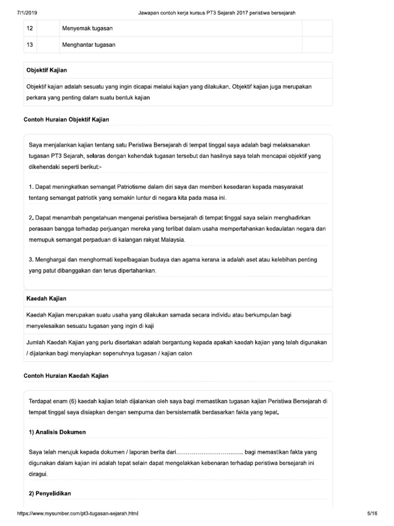 Jawapan Contoh Kerja Kursus Pt3 Sejarah 2017 Peristiwa Bersejarah
