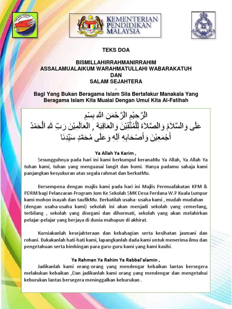 Doc Doa Majlis Pelancaran Program Jom Ke Sekolah Dan Watikah Pengawas Hapizu Awang Academia Edu
