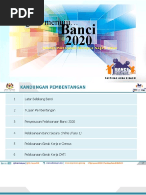 Banci 2010 merupakan projek statistik yang besar telah dapat dijalankan dengan jayanya dan melibatkan tenaga kerja yang ramai serta kos yang tinggi. M E N G H I T U N G M A L A Y S I A. BANCI PENDUDUK DAN PERUMAHAN MALAYSIA 2020.