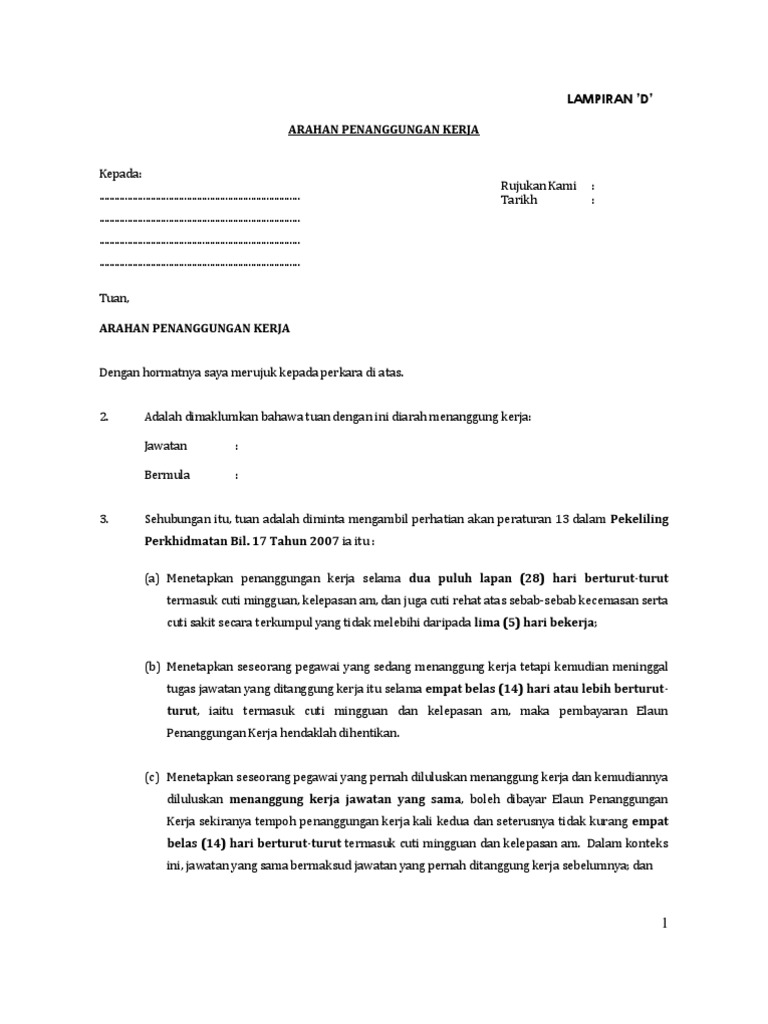 Pekeliling Perkhidmatan Bil 17 2007 Peraturan Penanggungan Kerja