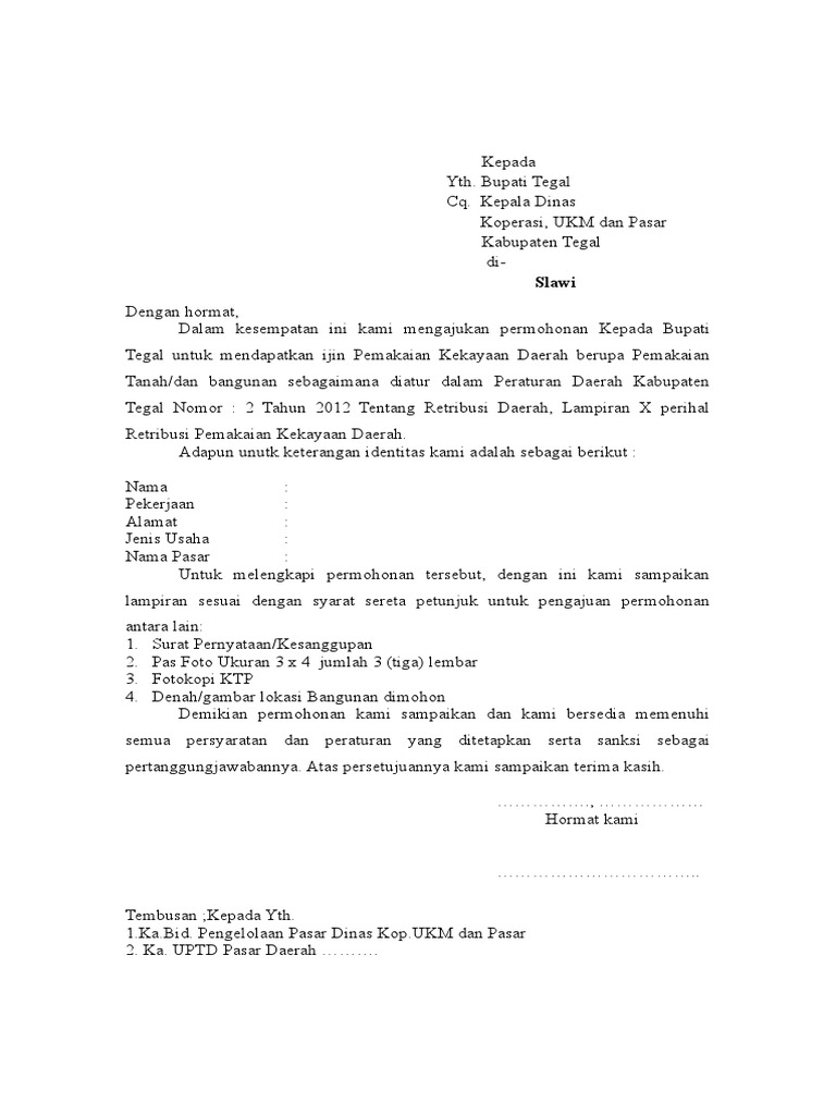 Contoh Surat Permohonan Sewa Kios
