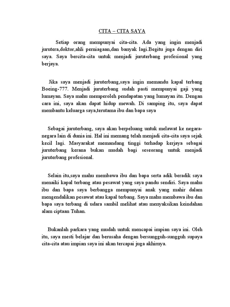 Cita Cita Saya Ingin Menjadi Pilot In English Malaygaga