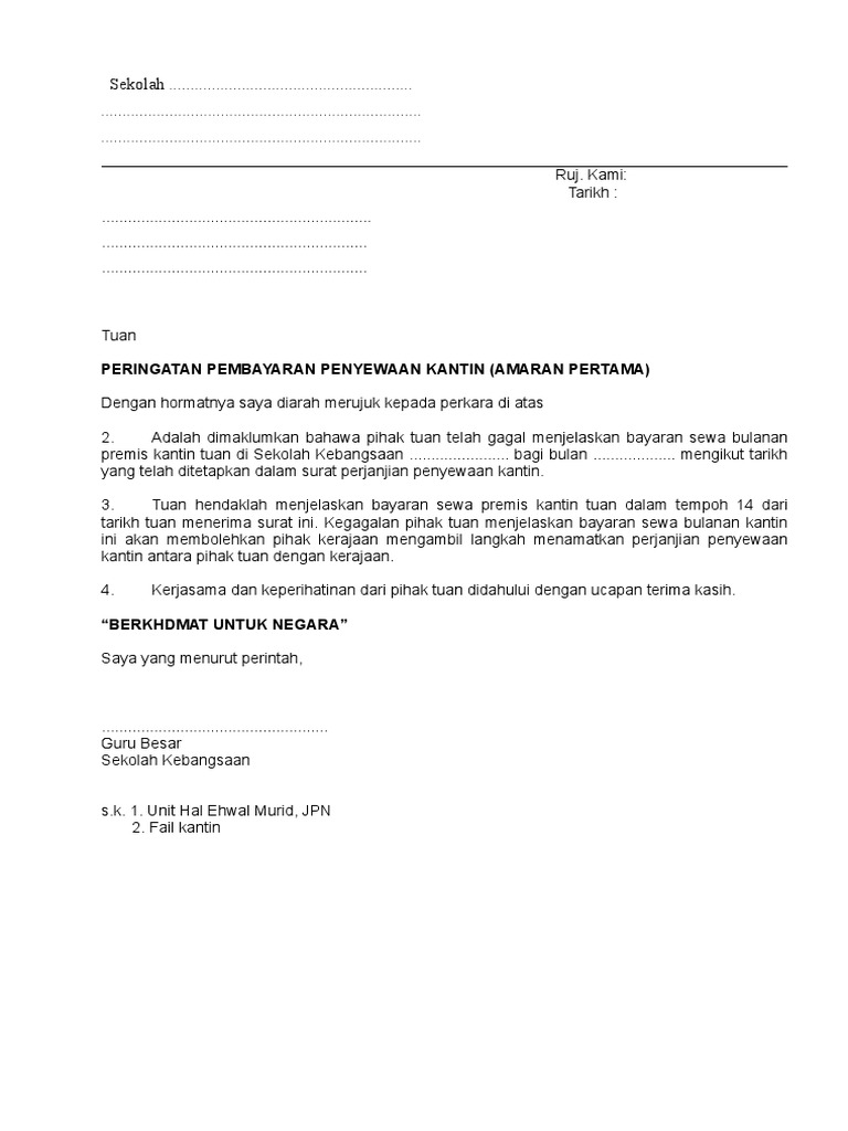 Contoh Surat Berhenti Sewa Kedai Contoh Surat