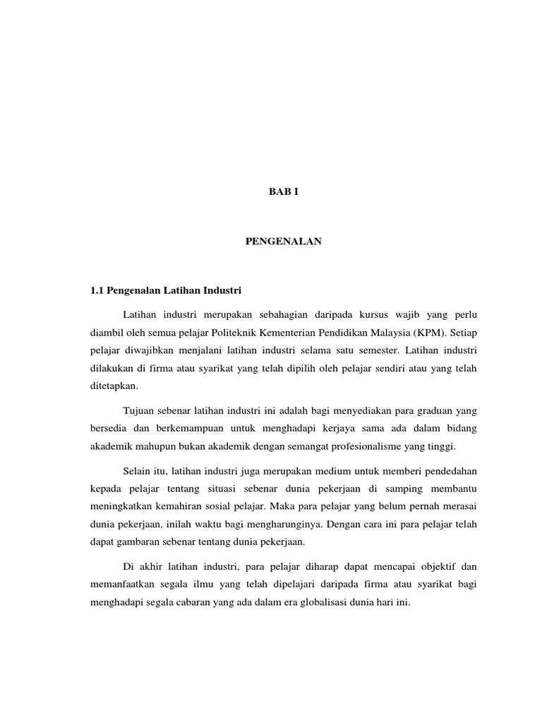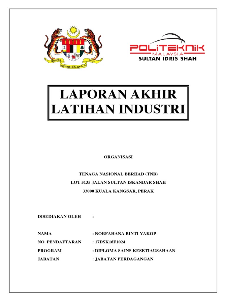 Contoh Laporan Akhir Latihan Industri Politeknik Jabatan Perdagangan 2018