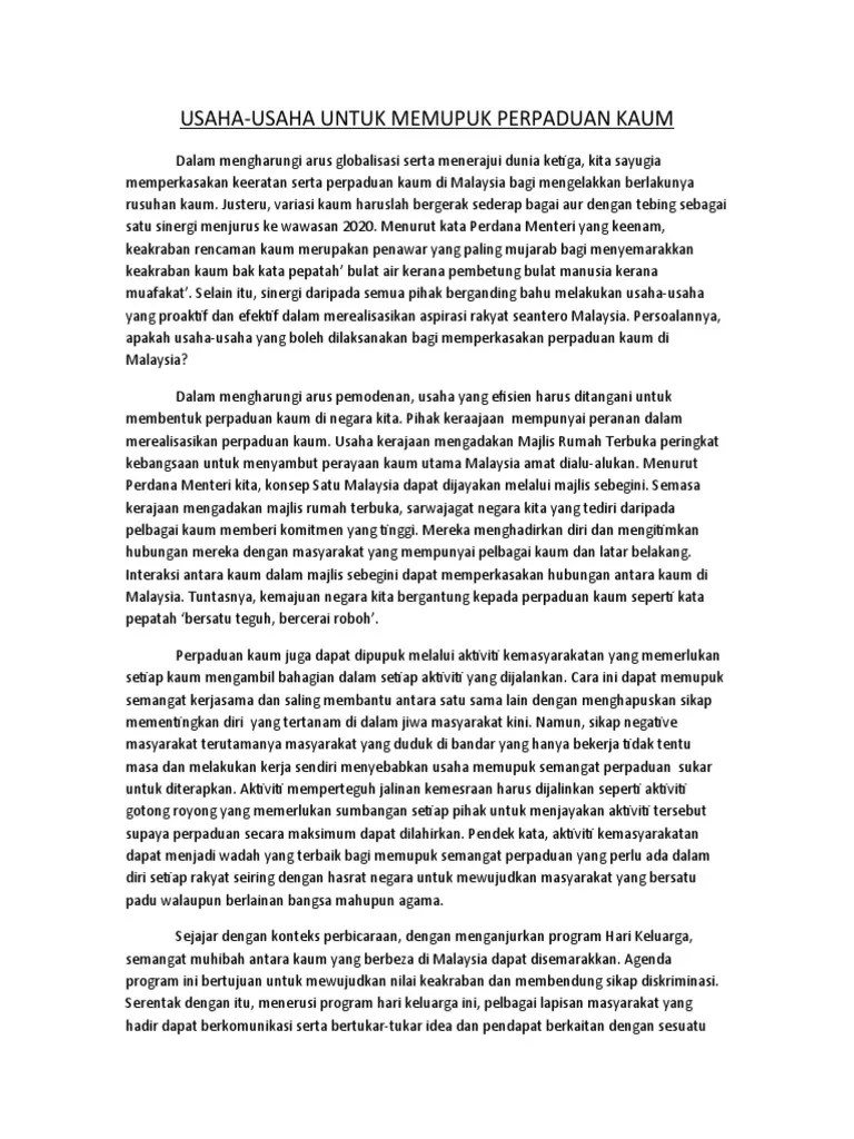 Usaha Usaha Memupuk Perpaduan Kaum Info Wisata Hits