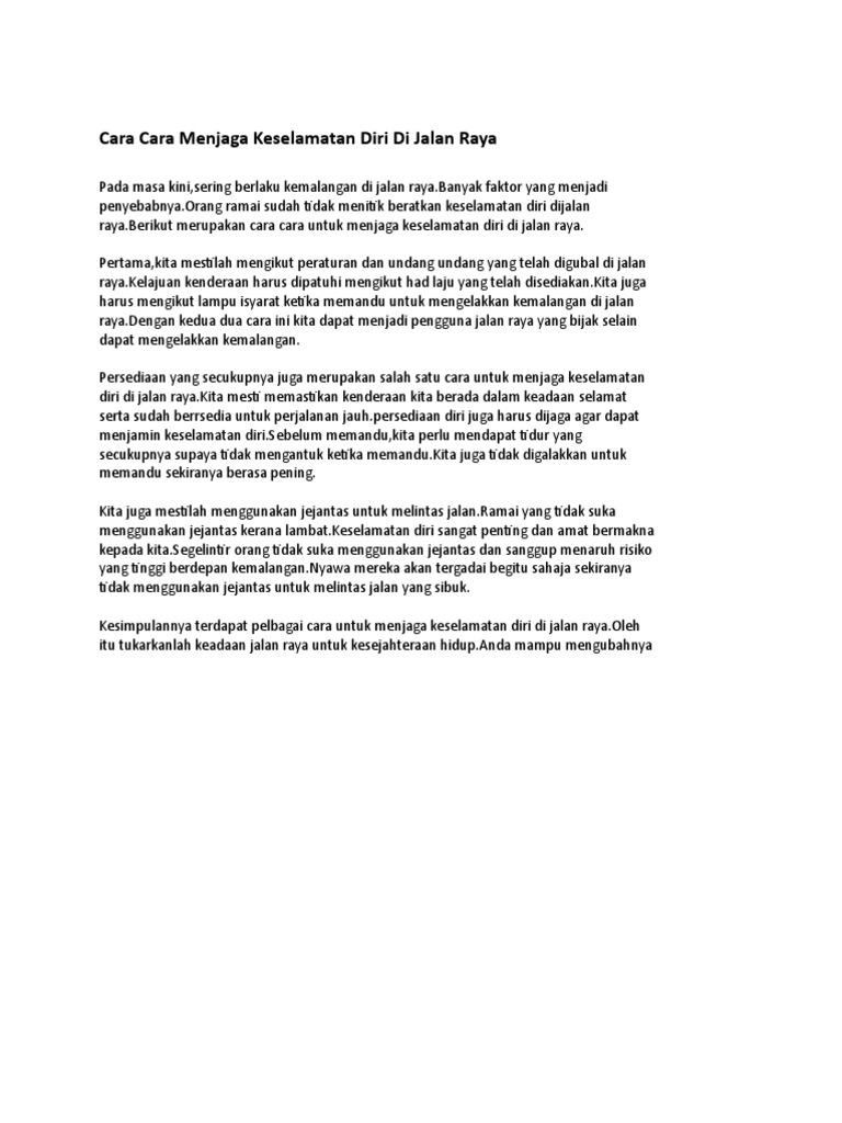 Contoh Karangan Fakta Cara Cara Mengatasi Kemalangan Jalan Raya