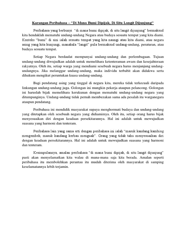 Contoh Karangan Peribahasa Dimana Bumi Dipijak Disitu Langit Dijunjung